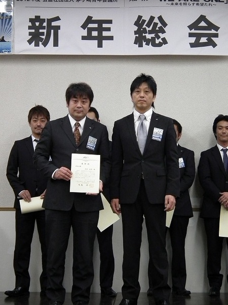 | 事業報告  » 2012年度新年総会 開催報告です  » 2011年度褒章:委員会賞は総務委員会です 代表して委員長の内田 拓馬君が受賞しました | |||||