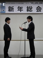 | 事業報告  » 2012年度新年総会 開催報告です  » 2011年度理事長 矢島淳一君へ岡本理事長より感謝状の贈呈です | |||||