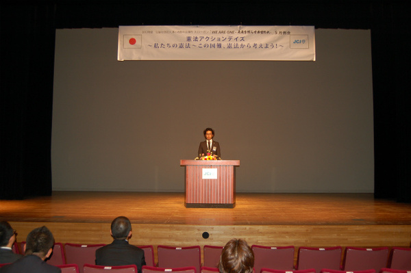 | 事業報告  » 5月例会事業報告  » 閉会宣言 原田智幸君です。 | |||||